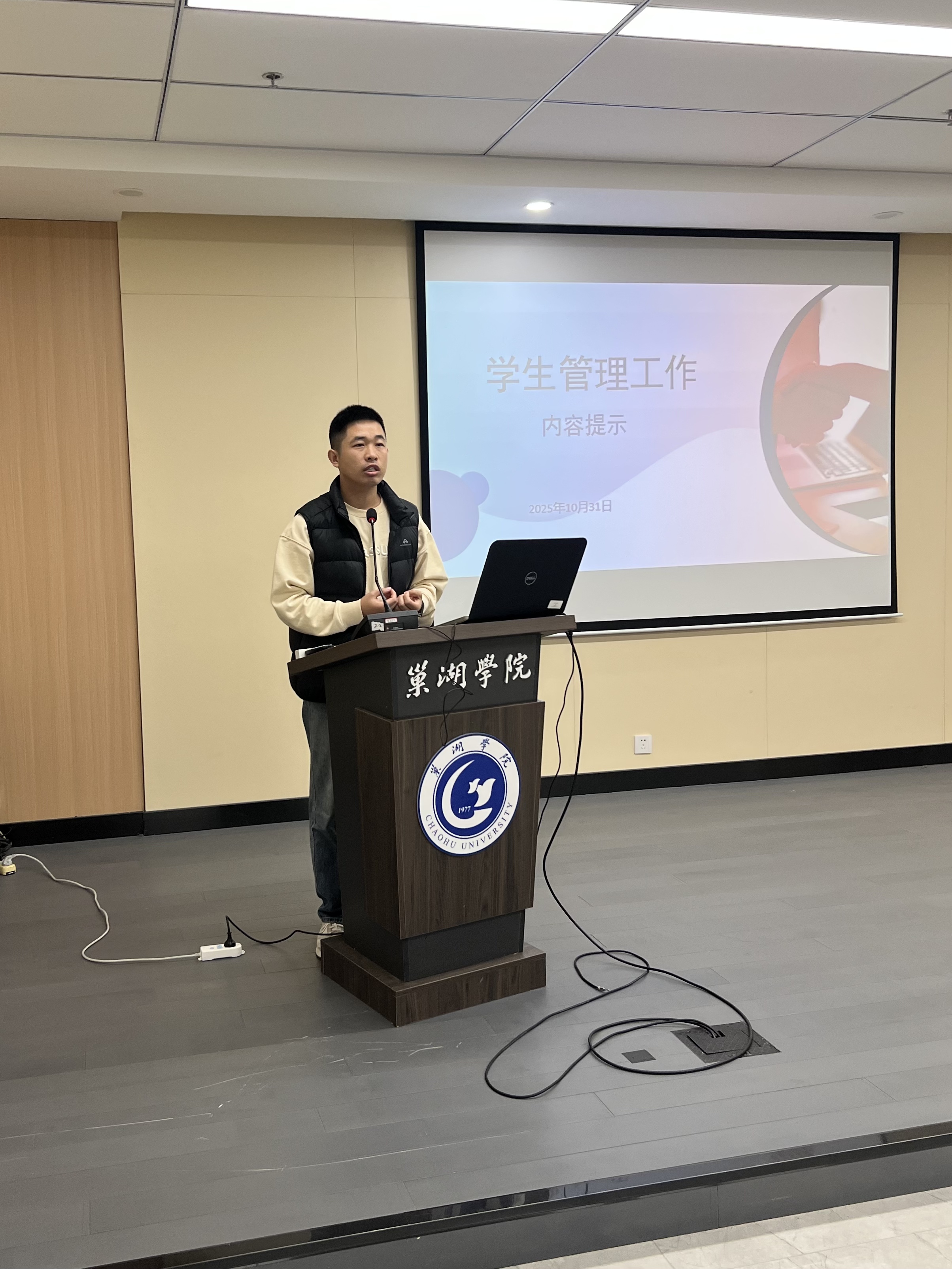 学工部副部长金晶紧扣学生管理工作中的痛点难点问题,以“实战化、精准化”为导向,针对多类关键场景,着重讲解处置规范,杜绝次生风险发生,要求辅导员必须熟练掌握保卫处紧急电话和校医院急救电话。金晶围绕网络安全、信息安全、外宿安全、社会交往安全、国家安全及宿舍防火防盗等高频风险点,通过案例分析、情景模拟等方式,强化辅导员的安全防范意识和应急处置能力,破解部分辅导员在学生管理中“缺少底气”的问题。​