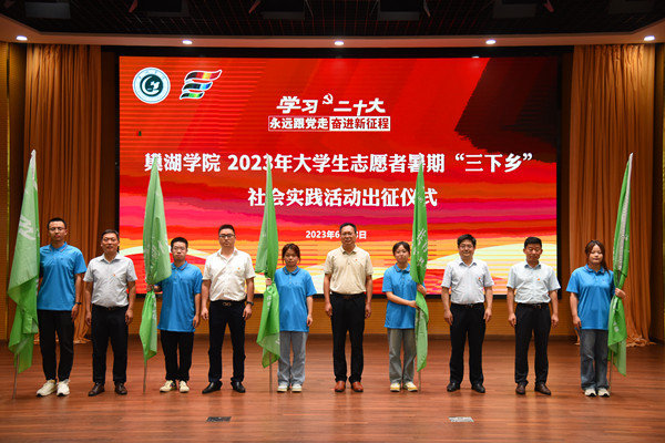 为深入学习宣传贯彻习近平新时代中国特色社会主义思想和党的二十大精神,认真落实团十九大部署,坚持在火热实践中培育有理想、敢担当、能吃苦、肯奋斗的新时代好青年,6月28日下午,Beat365唯一官方网站2023年大学生志愿者暑期“三下乡”社会实践活动出征仪式在求实楼报告厅举行。校党委书记周峰,党委委员、党委组织部部长柯应根,校办公室、党委宣传部、党委保卫工作部、教务处等相关职能部门负责人和各学院党政领导出席仪式,各学院团委书记、重点团队指导教师和成员代表参加仪式。仪式由校团委书记王倩主持。