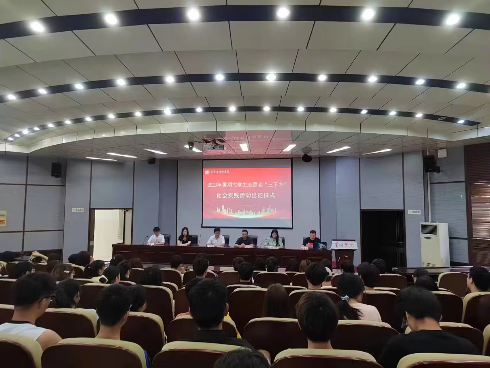 为深入学习贯彻习近平新时代中国特色社会主义思想和党的二十大精神,认真落实团十九大部署。6月29日上午,文传学院在致知楼报告厅举办“学习二十大、永远跟党走奋进新征程”大学生志愿者暑期“三下乡”社会实践活动出征仪式,活动由院团委负责人程生风老师主持。学院党委副书记孙冰、组织员任冰冰、团委副书记刘偌熙、马克思主义学院吴卿老师、暑期“三下乡”青年志愿者参加了出征仪式。