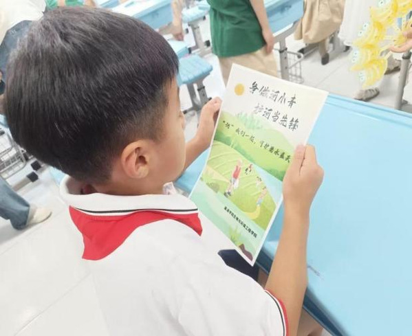 活动过程中,志愿者们还发放了“争做河小青 护河当先锋”活动的宣传单页和主题动画贴纸,小朋友们争先恐后地将贴纸粘贴在胸前,并纷纷表示要“争当河小青,保护母亲河”。
