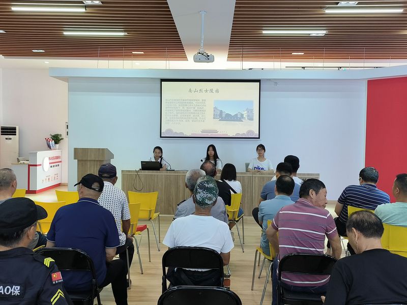 革命年代,有党有国家。宣讲实践团于7月1日来到西山社区便民服务站开展宣讲活动,实践团成员吴萍引领党员们回顾了党的革命历程,重温了先烈事迹。同时通过PPT展示了许多巢湖本地的红色文化遗址和英勇先烈事迹,详细宣讲巢湖市的红色文化,让党员们切身感受身边红色文化的厚重。