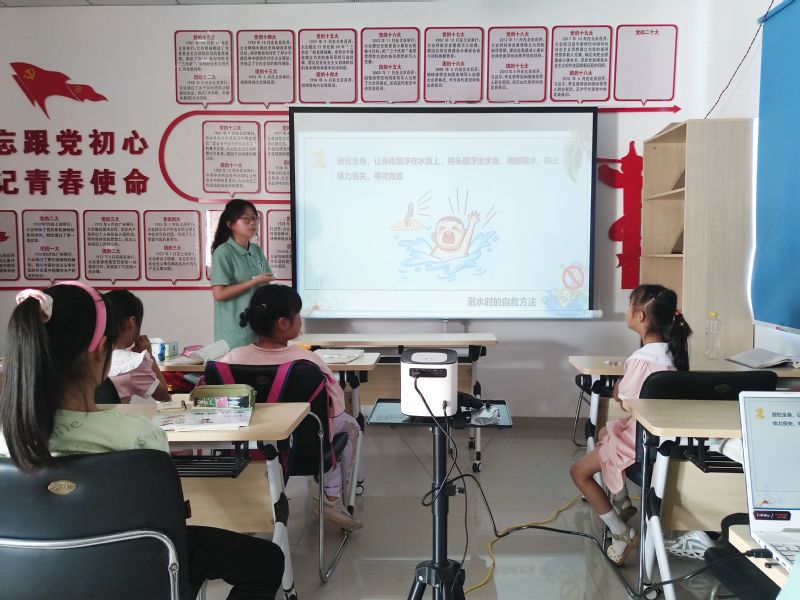 安全第一,珍惜生命,预防溺水,从我做起。7月6日,实践团队成员陈楠楠进行的防溺水安全宣传教育,让当地的孩子更加了解溺水的危害和预防措施,深刻理解“六不、两会、四知道”的涵义,提高自我保护能力,有效避免不必要的伤害和损失。课堂上,团队成员耐心讲解,生动授课,孩子们也积极回答团队成员提出来的问题,氛围融洽。