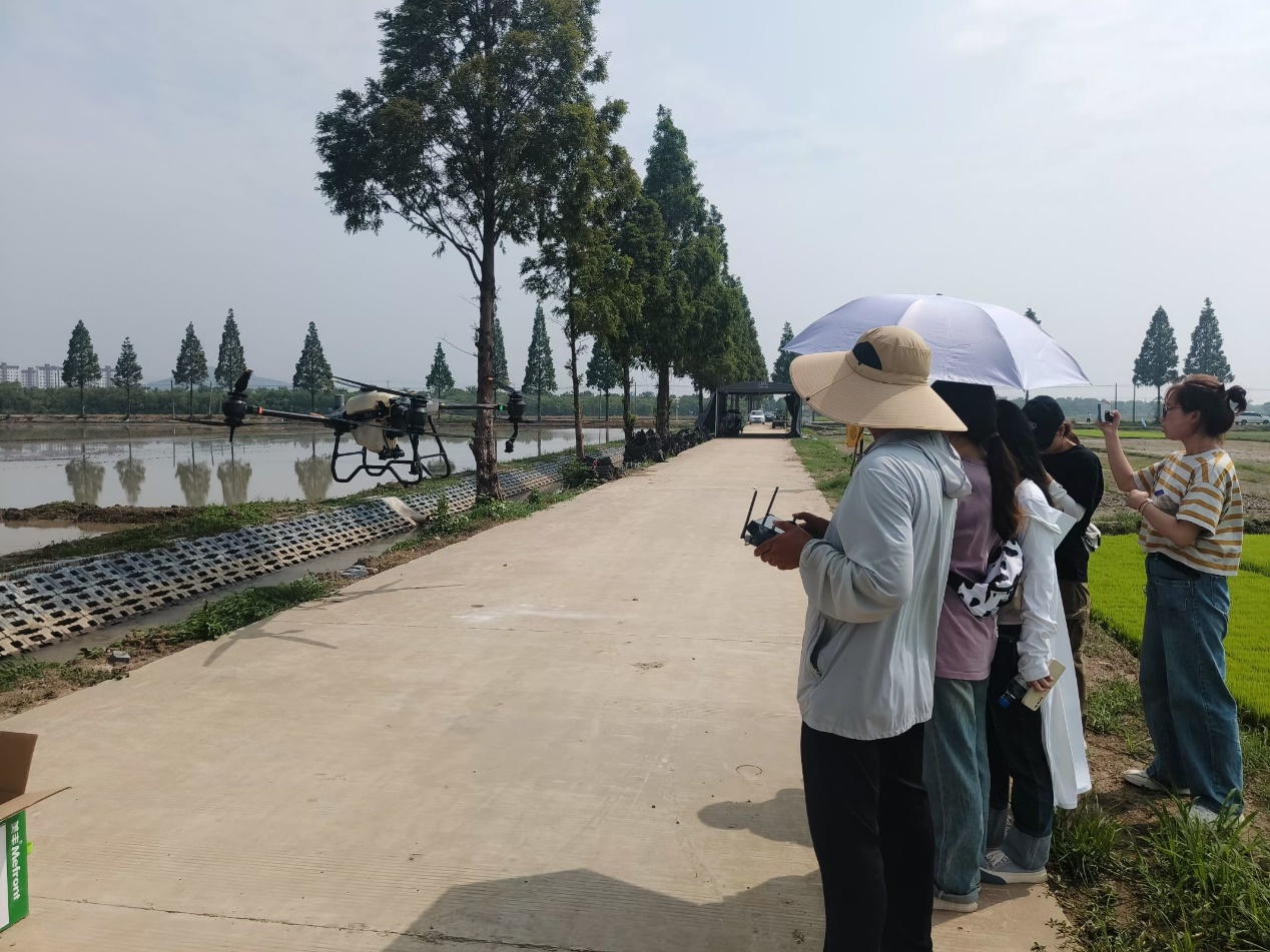 为了解槐林镇水稻业生长现状,助力槐林镇打造稻米+生态产业园,夏乡稻麦小队于前往环湖南岸现代农业产业园“皖中有米”水稻种植基地进行实地考察调研活动。与政府工作人员对接后,成员们前往水稻种植基地采访相关工作人员,在工作人员的讲解下,成员们了解到槐林镇特有的“紫云英+水稻”种植模式。紫云英具有很好的固氮作用。紫云英亩产鲜草可达2000公斤,压青回田沤肥后,能减少20%化肥用量,并可改善土质板结、酸化严重等问题。连续种植三年,土壤肥力和适耕性将显著提升。自2021年以来,环湖南岸现代农业产业园“皖中有米”水稻种植基地积极推广“一季水稻+一季紫云英”的种植模式。接着,工作人员向成员们展示无人机喷洒农药技术,通过实践操作,成员们了解到,无人机技术采用的喷雾喷洒方式至少可以节约50%的农药使用量和90%的用水以及90%的时间。通过无人机技术,仅需五分钟就可完成十亩农田的农药喷洒工作。