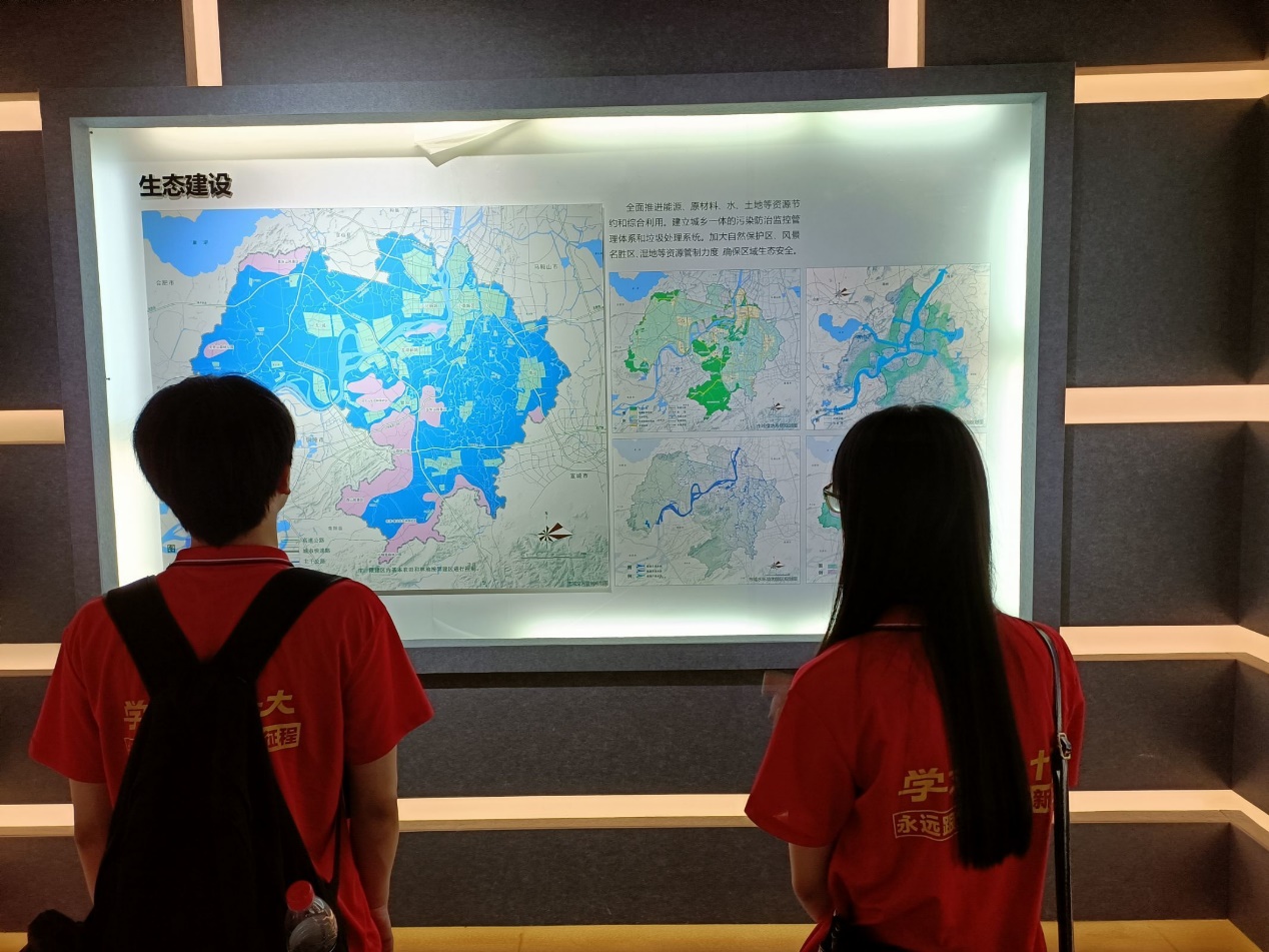 随后,成员们还参观了绿地系统规划重点区,其中芜湖市绿地系统规划的主要思想:长江作轴、龙湖为心、水网呈翼、山林筑屏给成员们对于建设美丽中国带来了更多的思考空间。