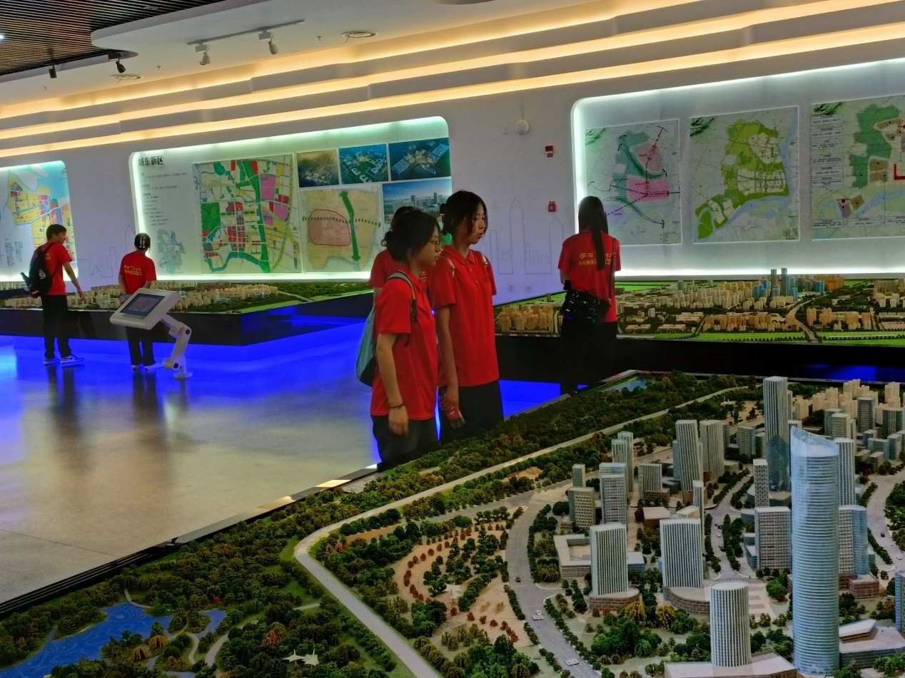 然后,实践团成员们来到二楼芜湖市规划展厅,二楼展厅主要介绍芜湖市千百年来的历史变革以及新中国成立以来的城市建设成就,实践团成员们参观了“总体规划、专业专项规划、重点片区规划等展区和4D影院、体验区等。