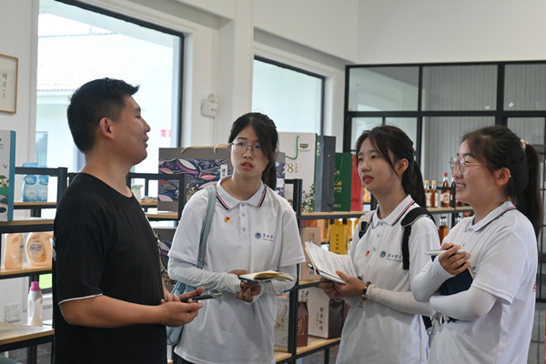 在郎溪县,实践团先后来到阳力家庭农厂、苏皖合作示范区展览馆、青狐农村电商直播基地和康龙农业开发有限公司进行实践走访调研。在阳力家庭农厂,实践团员们深刻感受到科技兴农理念和生态环保概念给农业发展带来的巨大变化,农业发展由增产导向转向提质的现代化农业导向。在苏皖合作示范区展览馆中,实践队员全面了解郎溪县概况与发展优势、产业布局与营商环境,且随着乡村振兴以及跨省合作政策的出台,郎溪县日益成为外地企业竞相投资的区域。在青狐农村电商直播基地,实践队员们深刻感受到互联网给农业带来的巨大变化,新鲜的农产品趁着互联网平台的便利,远销各地,农民收入较以前有了巨大提升。在康龙农业开发有限公司,实践队员走进公司生产车间,参观原材料加工的过程以及亚临界低温萃取工艺,在工作人员对科研产品的介绍下,队员也深刻领悟到科技对企业发展以及乡村振兴的重要性。