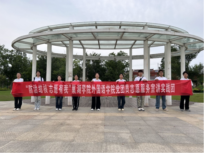 为深入学习贯彻党的二十大精神,7月1日至7月3日,外国语学院“防治结核志愿有我”党团员宣讲团赴环巢湖地区开展“携手防治结核共享健康生活”社会实践活动。