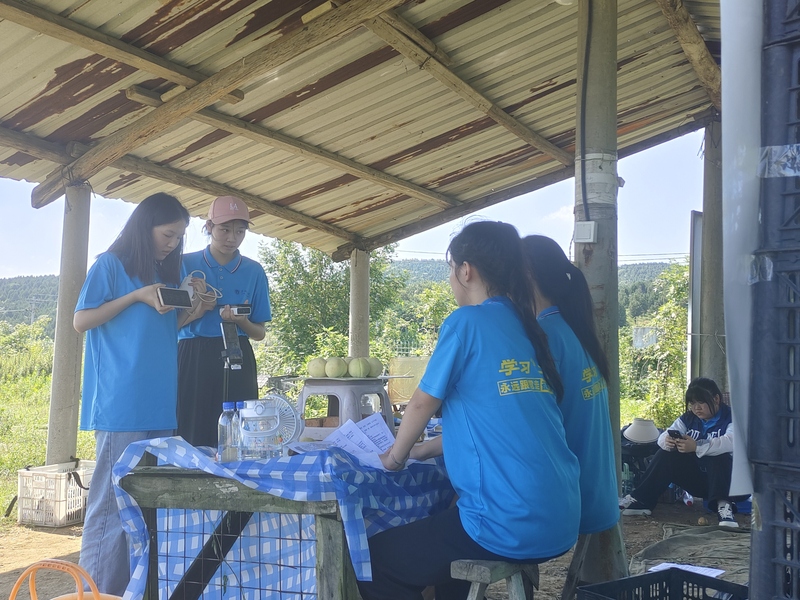 烈日炎炎,桃香四溢。实践队员在调研过程中,结合桃林优越的自然环境和便于采摘的树高,提出了“游玩+采摘”销售模式的新思路。队员们感受来自绿水青山深处的淳朴民风的同时,用自己的专业知识为元通村带去新的创意与技术。