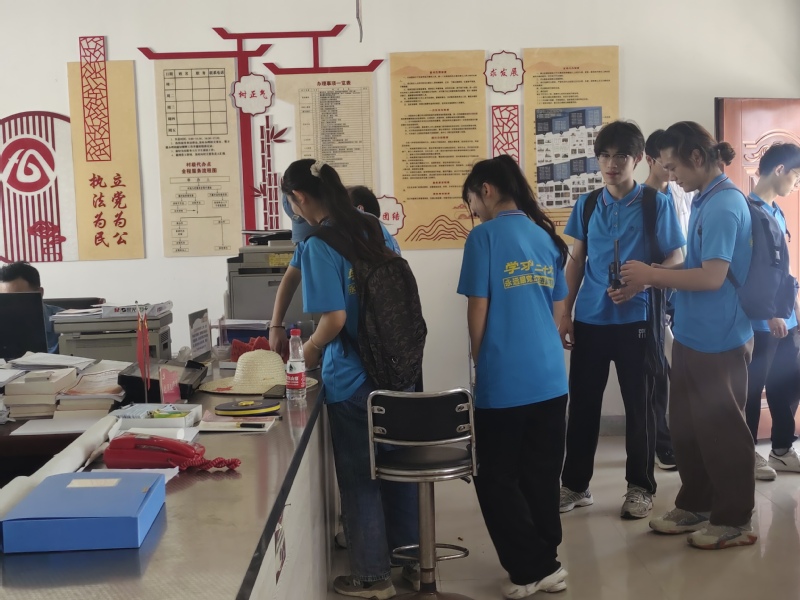 调研第一步,实践团来到元通村和当地负责人和农民进行交谈和采访。步入夏阁镇元通村,第一眼看到的是蜿蜒向前的一条小路,小路两边是一户又一户人家,门前坐着乘凉的老人,在他们的热情问候下,实践团来到了调研的第一站:夏阁镇元通村党群服务中心。周诚书记对调研团队的到来表示欢迎,并初步介绍了当地的产业现状。