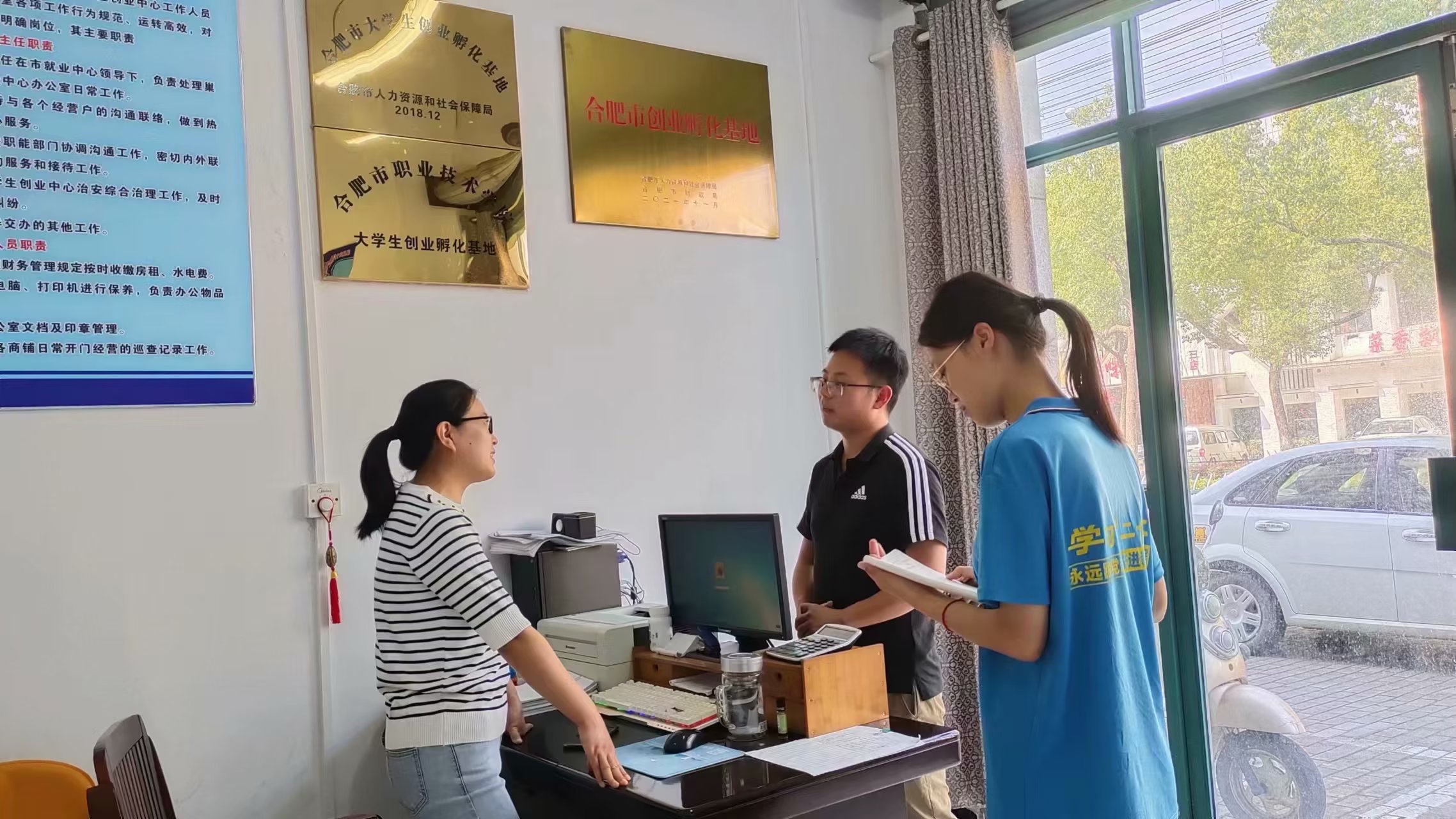 7月11日,实践团队来到巢湖市大学生创业中心管理办公室。创业中心于主任热情地向实践队员介绍了巢湖市大学生创业中心的基本情况与创业优惠政策。据悉,巢湖市大学生创业中心出台一系列扶持政策,申请成功的创业实体入驻创业中心“孵化期”(租期)为三年,第一年减半交纳水电费,前两年免交房租费,三年内免交物业费、卫生费、治安费等管理费用,优先享受创业担保贷款政策等。此外,创业中心还组织创业者免费参加创业培训,免费指导创业大学生参加创业大赛。