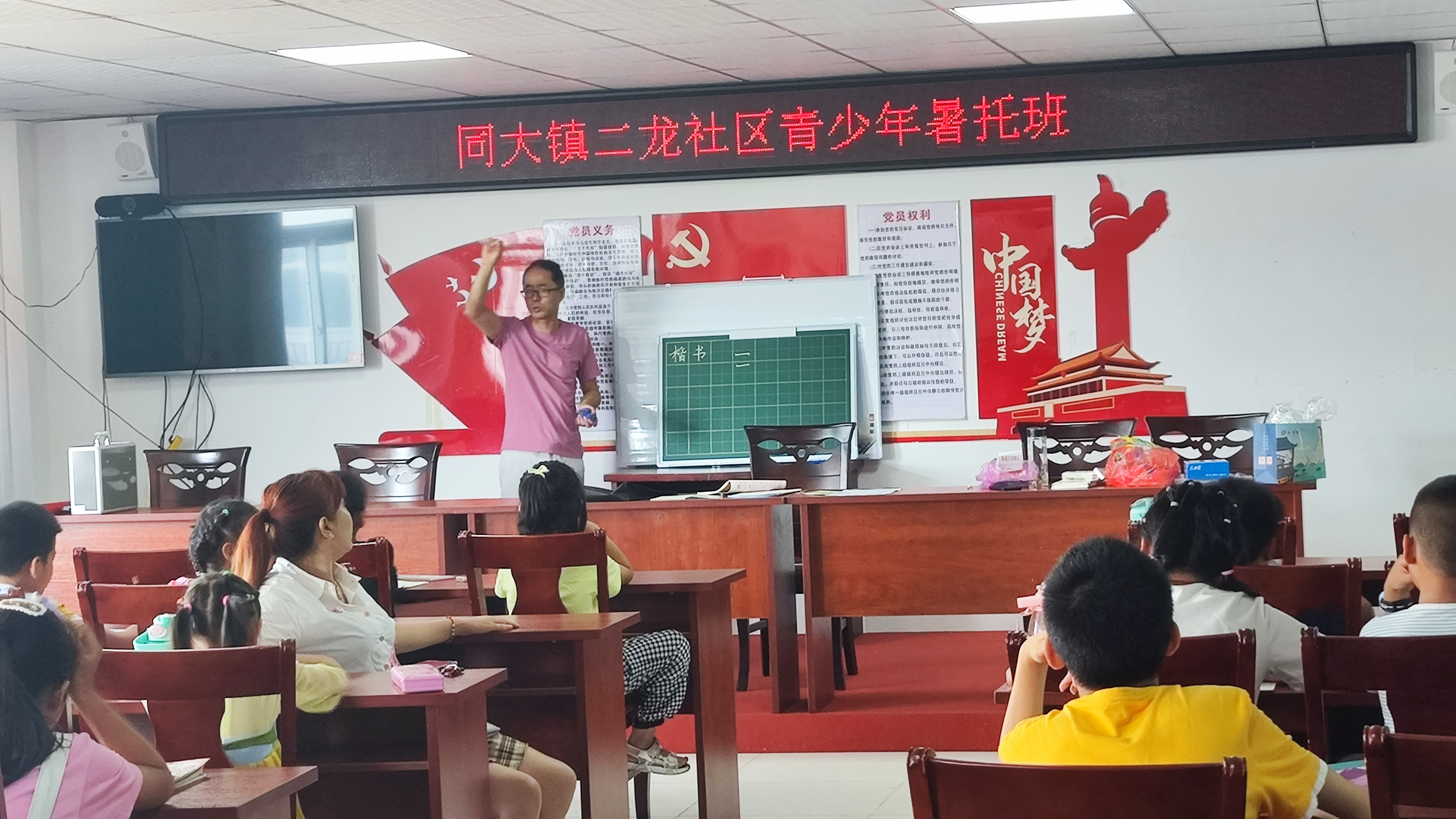 同大镇暑托班设置在村(社区)新时代文明实践站,结合农家书屋资源,针对小学生、初中生提供学业指导、阅读辅导、兴趣培养等服务。实践团队对孩子们的作业问题进行耐心解答,悉心指导,课堂之余引导孩子们在文明实践站借阅书籍,开展读书会分享读书心得,鼓励孩子们讲述自己的阅读体验、分享书中的精彩片段以及对所读书籍的评价,拓展孩子们的知识视野、激发阅读兴趣和引导他们学会思考。