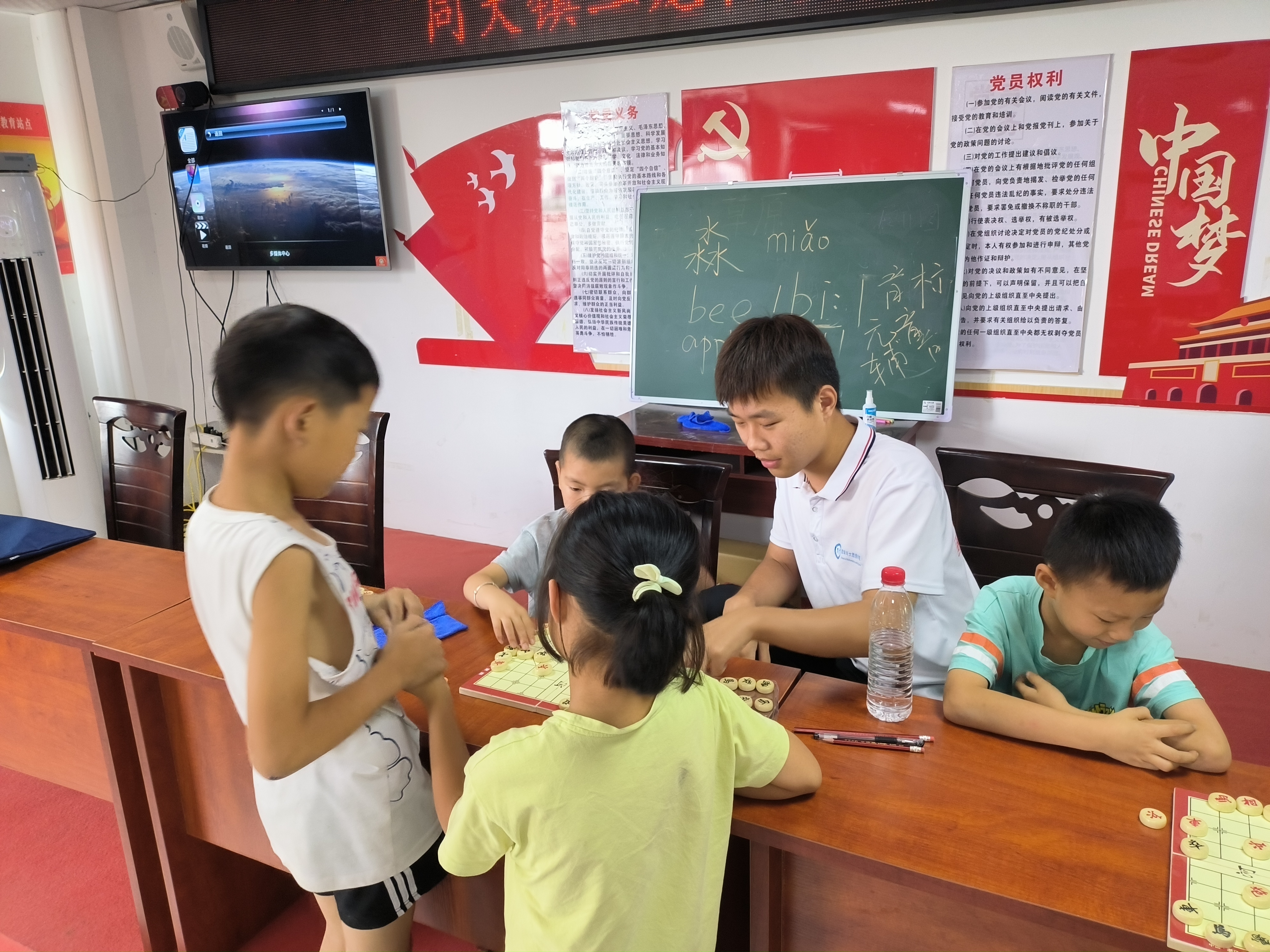 本次暑托班开设了象棋兴趣课,团队成员积极协助现场教师,做好象棋兴趣课程开设工作,与同学一起破解象棋难关。通过两两对决的方式展示自己的智慧,引导孩子们培养自己的兴趣爱好,同时也让更多的青少年领略象棋“国粹”博大精深的风采。