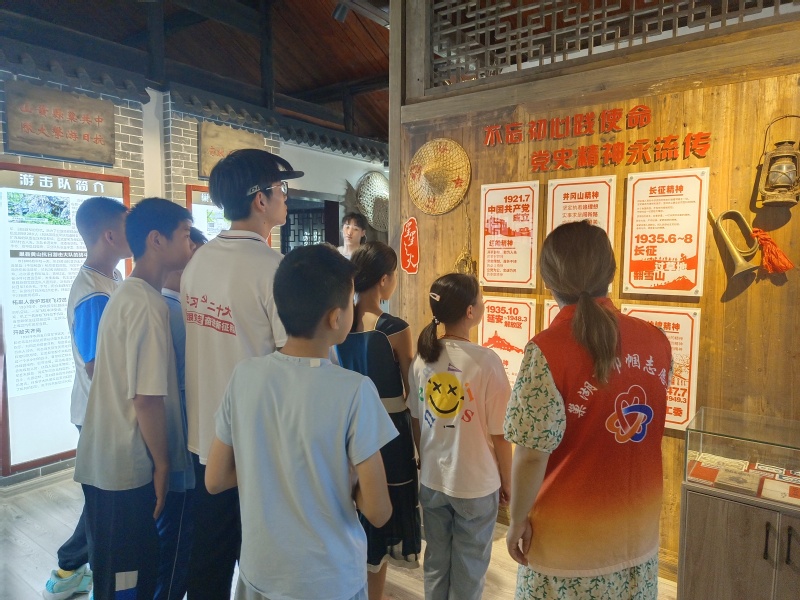 为充分利用好当地革命历史文化这本活教材,星火课堂实践团联合环巢湖革命文化实践团开展宣讲活动,从特工之王李克农到和平将军张治中,从南山烈士陵园到巢湖市博物馆,让五星村青少年更加了解当地历史,引导他们在革命奋斗史中汲取奋进力量、赓续革命基因、坚定理想信念;通过研学旅行,带领孩子们参观汪桥村史馆,了解汪桥村厚重悠久的历史和抗战时期作出的突出贡献,并选拔小小讲解员,让当地的青少年讲述家乡革命故事,从革命文化的被动接受者转变为主动传播者。