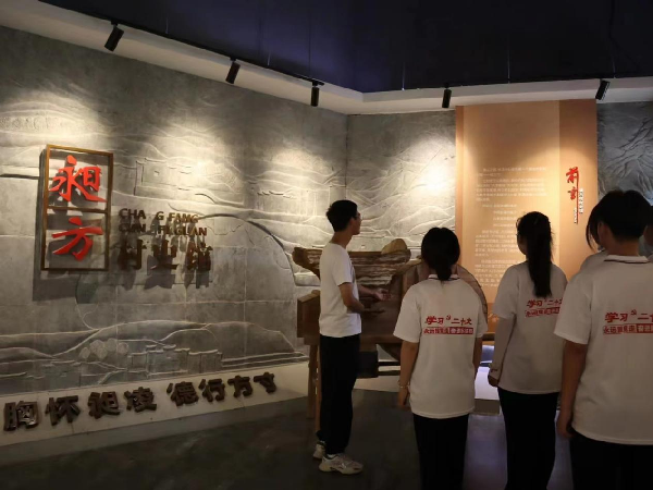 调研队员在昶方村党支部书记张子斌的带领下参观村史馆