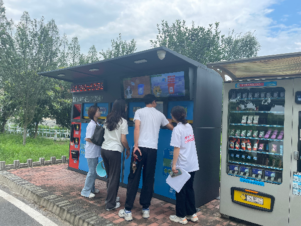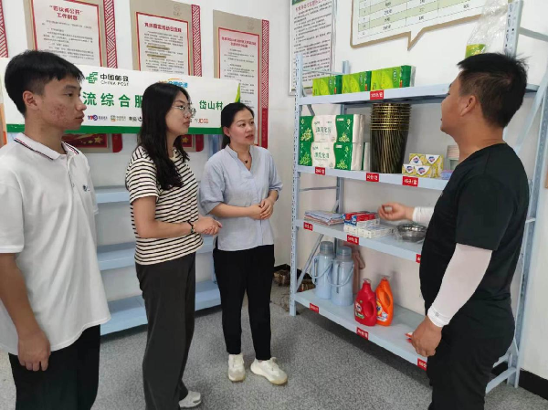 指导老师及队员在银屏镇岱山村志愿服务中心了解积分兑换制