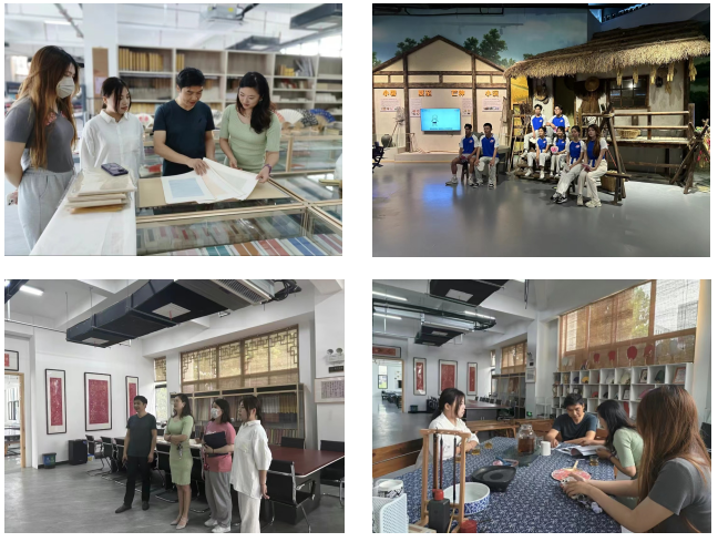 7月1日至5日,团队成员来到半汤温泉度假区,参观了二十四节气馆,在农场体验了采摘、垂钓等活动,并开展了助农直播。7月6日至10日,团队赴柘皋镇体验当地风俗文化,品尝了有名的柘皋早茶,在柘皋老街观赏彩陶、树雕画、纸笺加工技艺等非物质文化遗产,在观赏和体验汇总中感受到非遗的文化魅力。团队成员还参观了柘皋巢北抗日基地,在讲解员的介绍下重温巢湖地区抗战的光辉历史。7月11日至15日团队到黄麓镇张治中故居、厵村、掇英轩(非遗纸笺加工基地)开展调研。