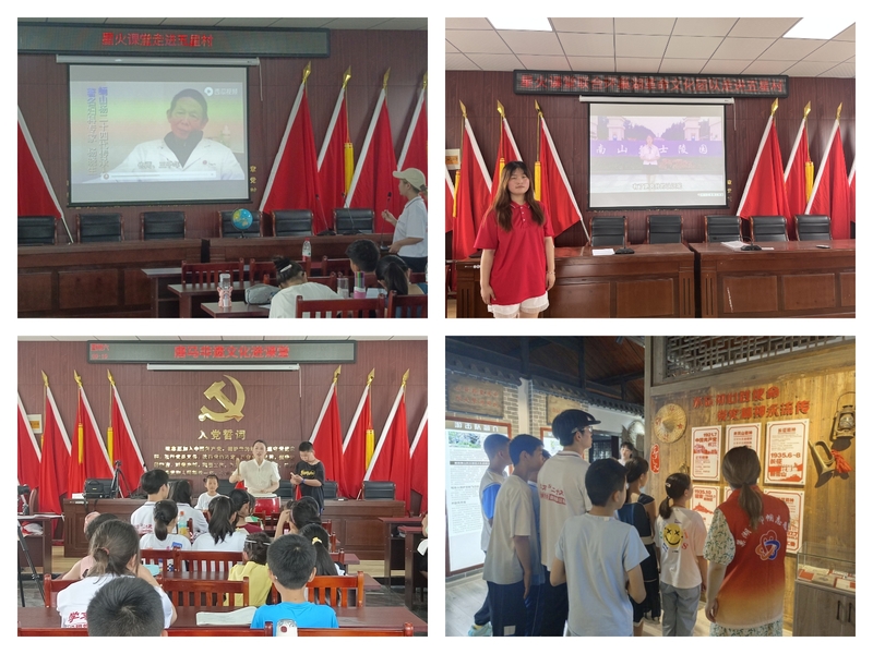 为深化当地青少年对家乡的文化认同和情感认同,塑造学生健全的世界观与价值观,厚植家国情怀,星火课堂实践团联动多个实践团队,将本地的历史沿革、革命文化、民俗风情和非遗文化纳入课程内容。环巢湖革命文化实践团讲述和平将军张治中和特工之王李克农的英勇事迹,介绍南山烈士陵园和巢湖市博物馆,引导五星村青少年从革命奋斗史中汲取奋进力量、赓续革命基因。柘皋唐马“同心燃梦”乡村振兴实践团团队指导老师许沙用小鼓将唐马非遗文化带入课堂,邀请小少年们体验击鼓、模拟赛龙舟,感悟唐马先民们敢为人先、艰苦不屈的精神。传峏山杨中医文化实践团与孩子们分享了峏山杨传人的采访视频,向孩子们展示峏山杨中医药文化的源远流长。此外,实践队员与五星村团委书记汤丹丹还组织了一场研学旅行,带领孩子们参观汪桥村史馆,了解汪桥村厚重悠久的历史和抗战时期做出的突出贡献,并选拔小小讲解员讲述家乡革命故事,让孩子们从革命文化的被动接受者转变为主动传播者。
