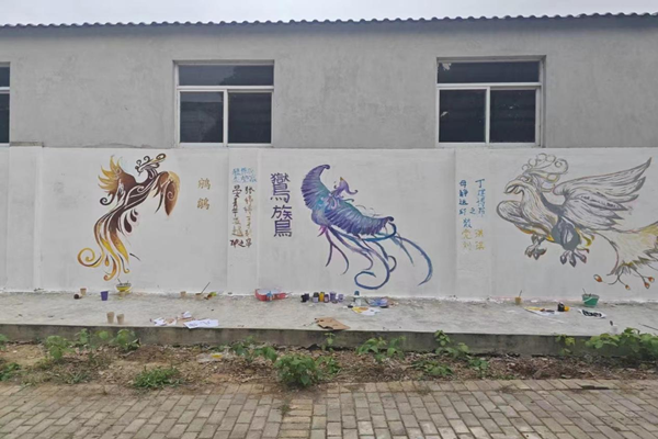 烔炀镇凤凰村名称的来由与凤凰有关,实践团队根据传说故事,在充分听取村民和村委会的意见后,以“凤凰”为主题,开展墙绘,意在为凤凰村筑巢引凤。