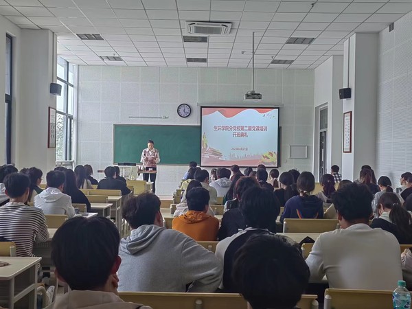 生物与环境工程学院分党校第二期党课培训开班典礼于4月27日中午在崇学楼南104教室举行,本次开班典礼由生物与环境工程学院辅导员潘晨主持,学院全体入党积极分子和发展对象参加,生环学院党委书记徐兆武做“学习贯彻习近平新时代中国特色社会主义思想主题教育”专题党课报告。