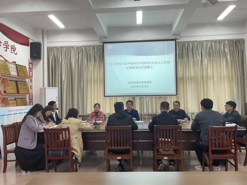 4月26日下午,经济与法学学院在学院会议室召开党委理论学习中心组学习会议暨学习贯彻习近平新时代中国特色社会主义思想主题教育动员部署会。学院领导班子成员、支部书记出席会议。会议由学院党委书记石庭主持。