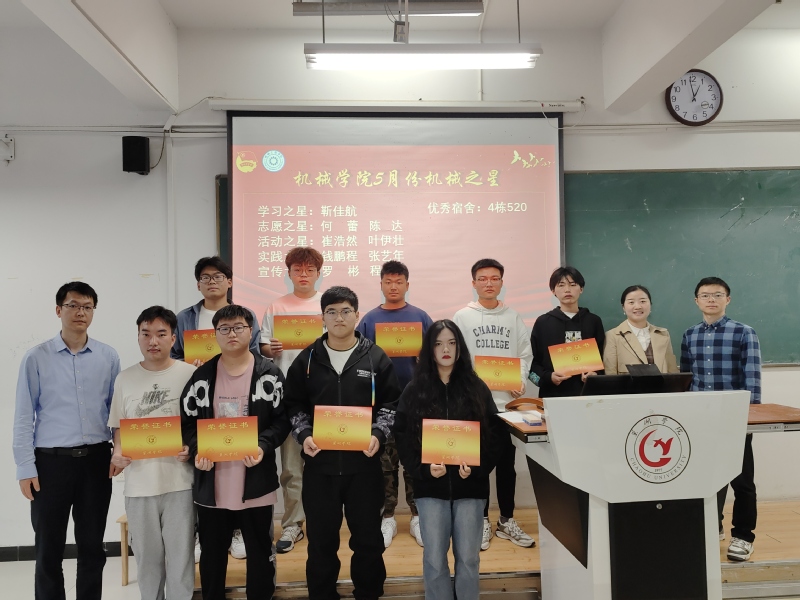 汇报结束后,老师们为获得4月“机械之星”和“艰苦奋斗强我中华”主题活动中获奖的同学颁发荣誉证书。