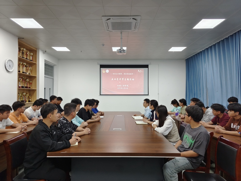 为深入学习习近平新时代中国特色社会主义思想,深入开展学习贯彻习近平新时代中国特色社会主义思想主题教育,正值五四青年节,5月4日下午,机械工程学院组织开展了“传承五四精神勇担青春使命”主题活动。学院团委书记苏洁红和副书记方钱牵头组织策划。