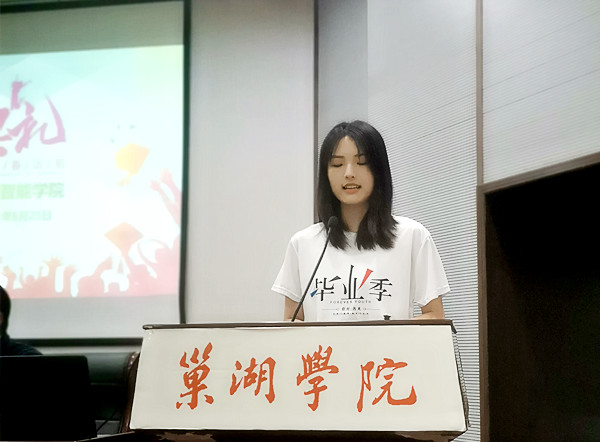 2019级软件工程专业田姿同学代表全体毕业生发言,她回忆了四年来校园生活的点点滴滴,表达了对母校以及同学们不舍之情,她表示将秉持校训,肩负时代责任,不负青春,做新时代奋勇前进的搏击者。