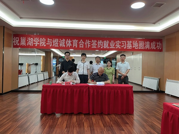 赵胜国代表体育学院与安徽煜诚体育健身有限公司签订了“Beat365唯一官方网站就业基地”合作协议书,并一同举行了授牌仪式。