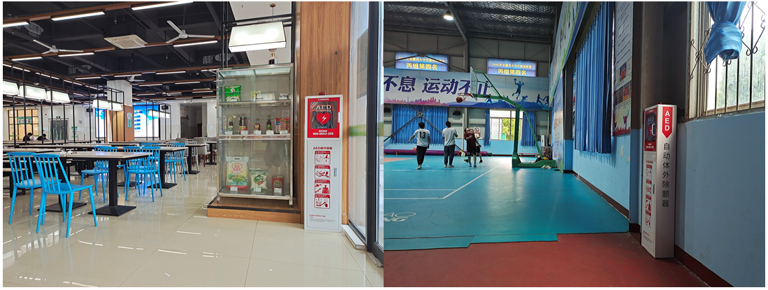 2023年6月5日,后勤处结合前期医疗专家选址建议和专业人员安装位置实地考察情况,在图书馆、慎思楼、博学楼、运动场、食堂、风雨操场、校医院等公共场所完成10台AED设备的安装工作,并在每台AED箱体内配置操作流程卡、急救箱等物品,以方便突发状况下就地开展救护。