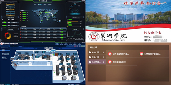 按照应用为先、以用促建的原则,整合学校服务器、存储、平台、数据等资源,为教学、科研、管理提供多元化应用服务。5月10日至6月3日,针对二级部门存储和计算资源不足问题,对部分老旧服务器进行升级改造,调配用于水电联控、医保结算等系统,为《通信原理》《高频电子线路》等课程以及大学生体质健康测试系统配置多个虚拟化服务器应用;依托学校大数据平台,开发并上线校友管理系统,整合校友资源,加强沟通联络,构建校友与母校发展共同体;与安徽省高校网络思想政治工作中心开展智慧思政平台共建合作,参与省教管服一体化智慧思政平台应用需求设计,共同制定平台数据标准与技术规范,并作为首批试点单位承担平台的测试推广、创新研究。学校持续优化“智慧巢院”门户平台、“今日校园”移动平台,建成统一数据中心、网上办事大厅和身份认证系统,集成OA、教务、人事、学工等26个业务系统,提供虚拟服务器应用达70余个,现已基本实现校园业务信息化全覆盖,规范、协同、高效的教育应用新生态初步形成。