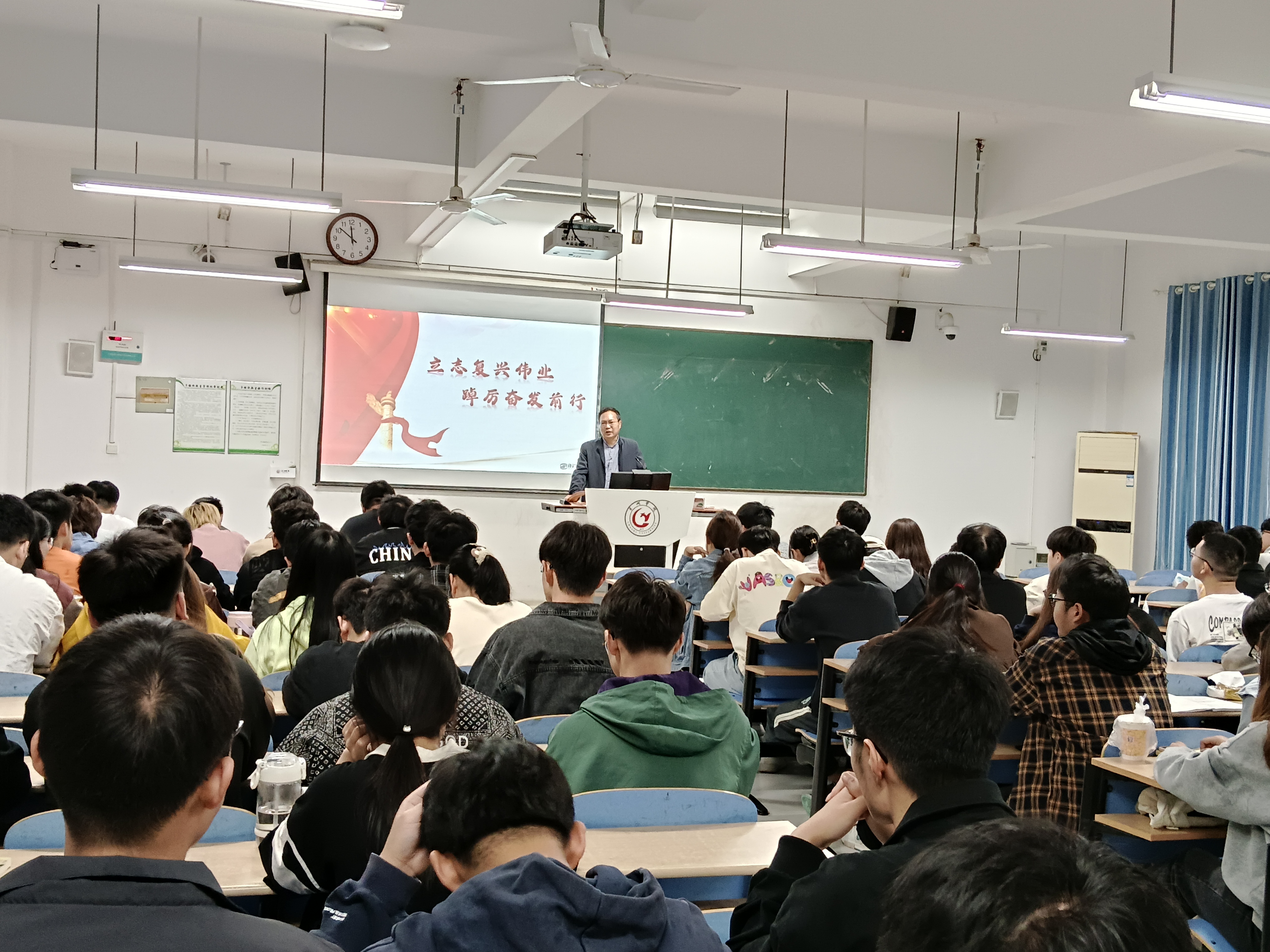 党委委员、组织部部长柯应根为2021级网络工程专业学生讲授思政课。他以“立志复兴伟业,踔厉奋发前行”为题,用亲身经历感悟生动剖析了党的二十大报告的主题,深刻阐释了“两个确立”对新时代党和国家事业发展、对推进中华民族伟大复兴历史进程的决定性意义。他希望学生在习近平新时代中国特色社会主义思想的指引下坚持德技并修,提高综合素质,夯实能力本领。