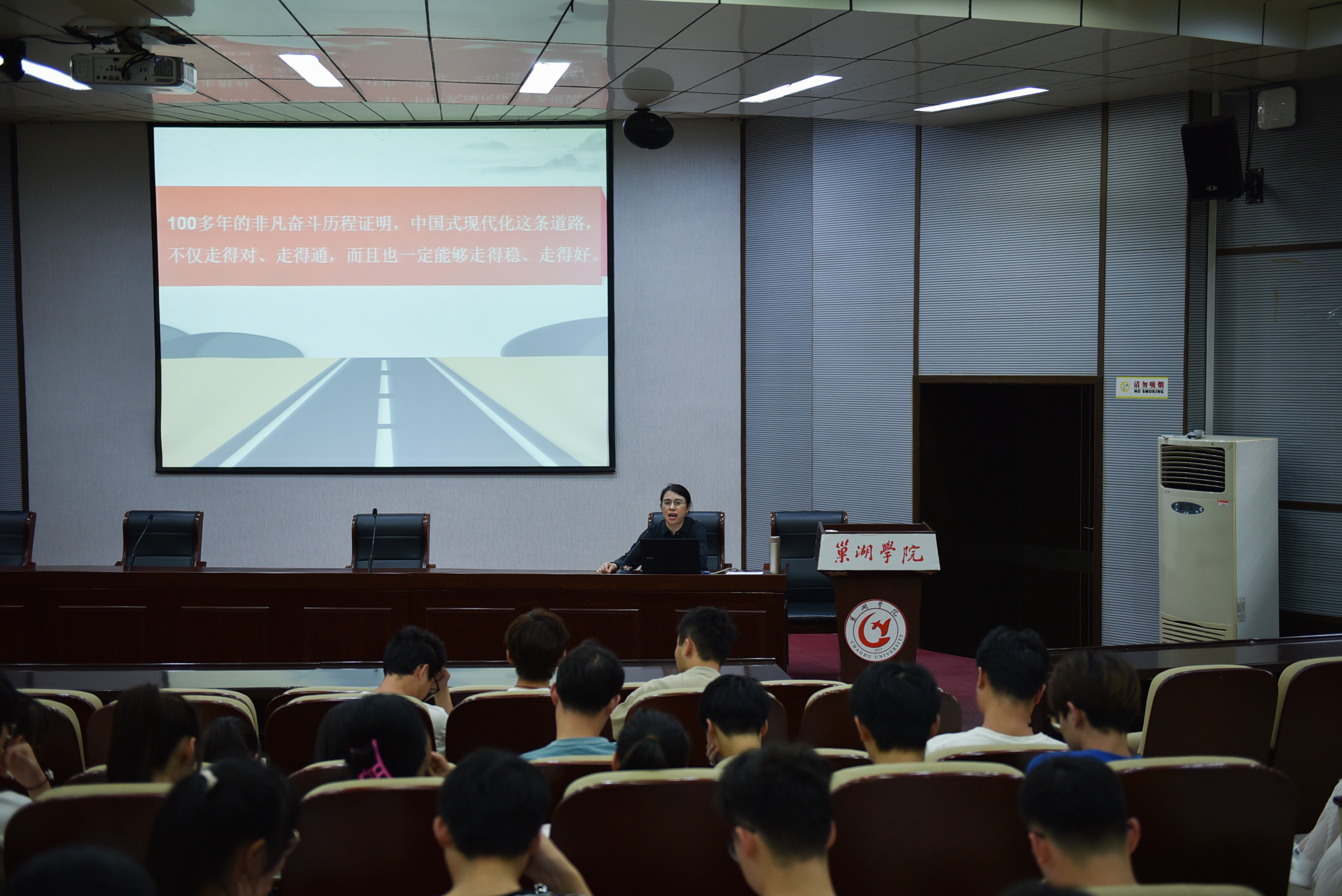 党委副书记、校长张莉以“走好中国式现代化之路”为主题,先后为2021级物联网工程专业、2021级数学与应用数学专业学生讲授思政课。她从“接续奋斗,追求千年梦想”“立足国情,开辟全新道路”“凝心聚力,推进复兴伟业”三方面展开解读,全面回顾了人类历史上三次现代化浪潮和中国式现代化道路的探索历程,向同学们深刻阐释了中国共产党推进社会主义现代化建设的历程、中国式现代化的特征及本质要求。张莉强调,中国式现代化是新中国成立特别是改革开放后长期探索实践基础上的结晶。实践证明,中国式现代化道路不仅走得对、走得通,而且也一定能走得稳、走得好。张莉指出,青年大学生生逢其时,既要积极分享中国式现代化的发展成果,又要志存高远,脚踏实地,不断提升知识、能力和素养,为中国式现代化的最终实现贡献个人的聪明才智。