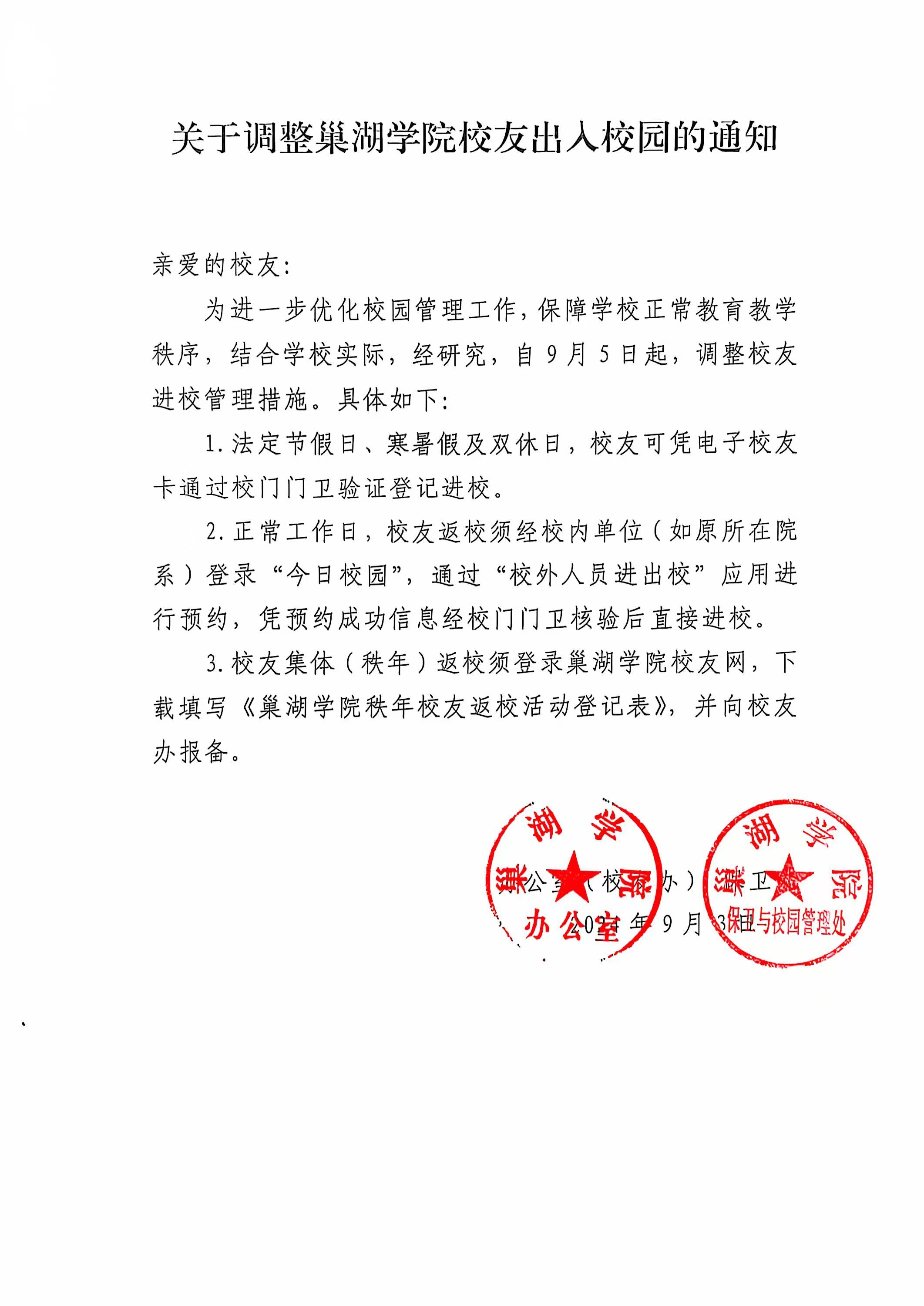 关于调整Beat365唯一官方网站校友出入校园的通知
