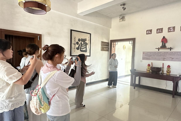 团队成员安志贤感慨道:“以前只在课本里接触过传统工艺,这次亲眼看到酒坛上的岁月痕迹,才真正理解‘匠心’的重量。” 。队员们一边聆听讲解,一边用手机记录文化元素,用画笔勾勒传统符号,为后续包装设计积累了丰富的文化素材。大家一致认为,只有深入理解黄酒背后的历史底蕴,才能让设计作品真正“有灵魂、有温度”。