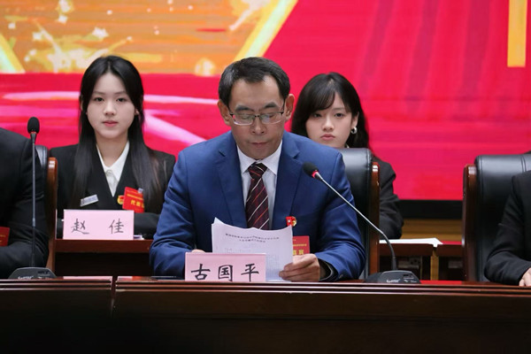 大会在庄严的国歌声中拉开帷幕。古国平代表学院党委致辞。他充分肯定了第三届学生会在思想引领、学风建设、校园文化、服务同学等方面取得的显著成绩,向长期以来关心支持学生工作的老师们表示衷心感谢,并向全体学生代表和广大同学致以亲切问候。孙定海结合学生管理工作,寄语新一届学生组织。要以此次学代会为契机,坚定理想信念,厚植家国情怀,锤炼过硬本领,在艺术创作与设计实践中勇攀高峰,在服务社会中展现青年担当,为学院高质量发展贡献青春智慧和力量。