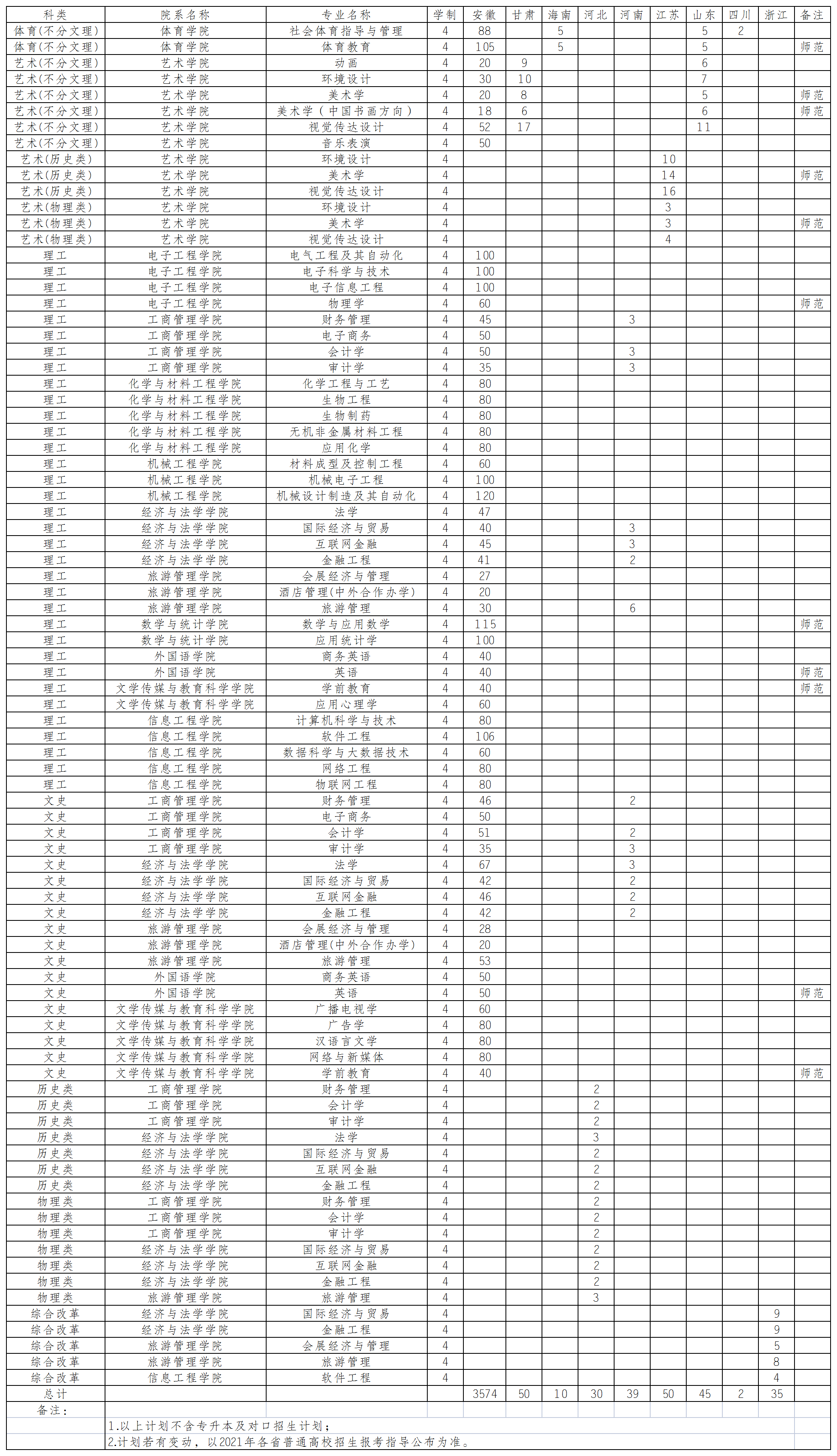 Beat365唯一官方网站2021年本科招生计划