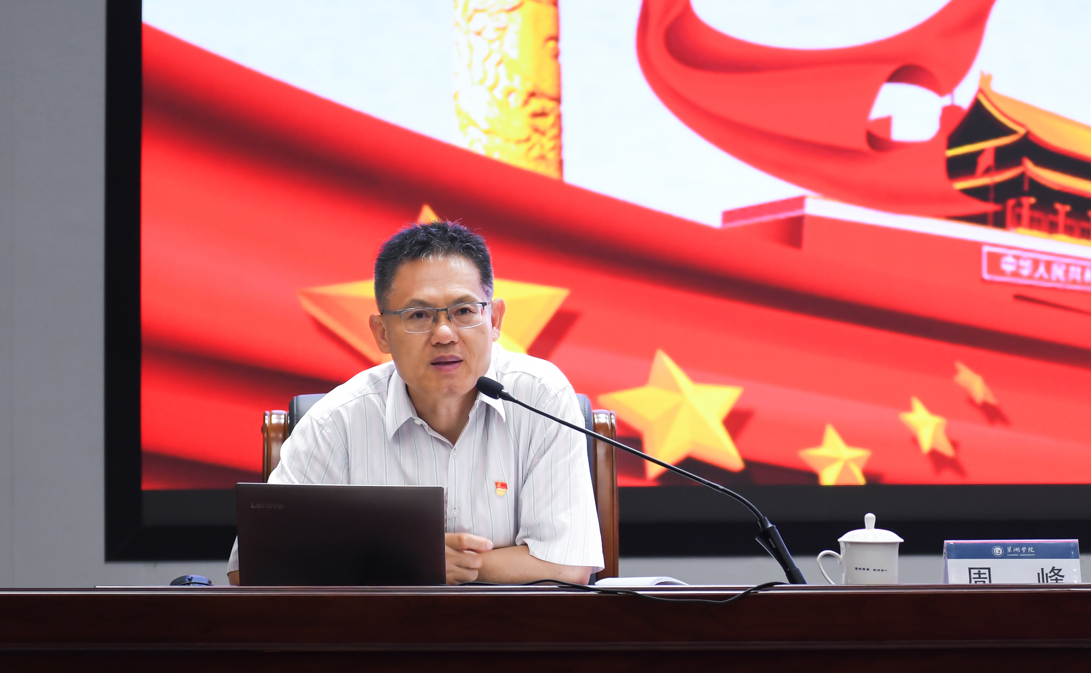周峰以《铭记誓言守初心,服务师生树新风》为题,结合正在开展的学习教育,从“初心与使命的永恒承诺、作风建设的铁规禁令、誓言到行动的矢志践行”等三个方面进行授课。
